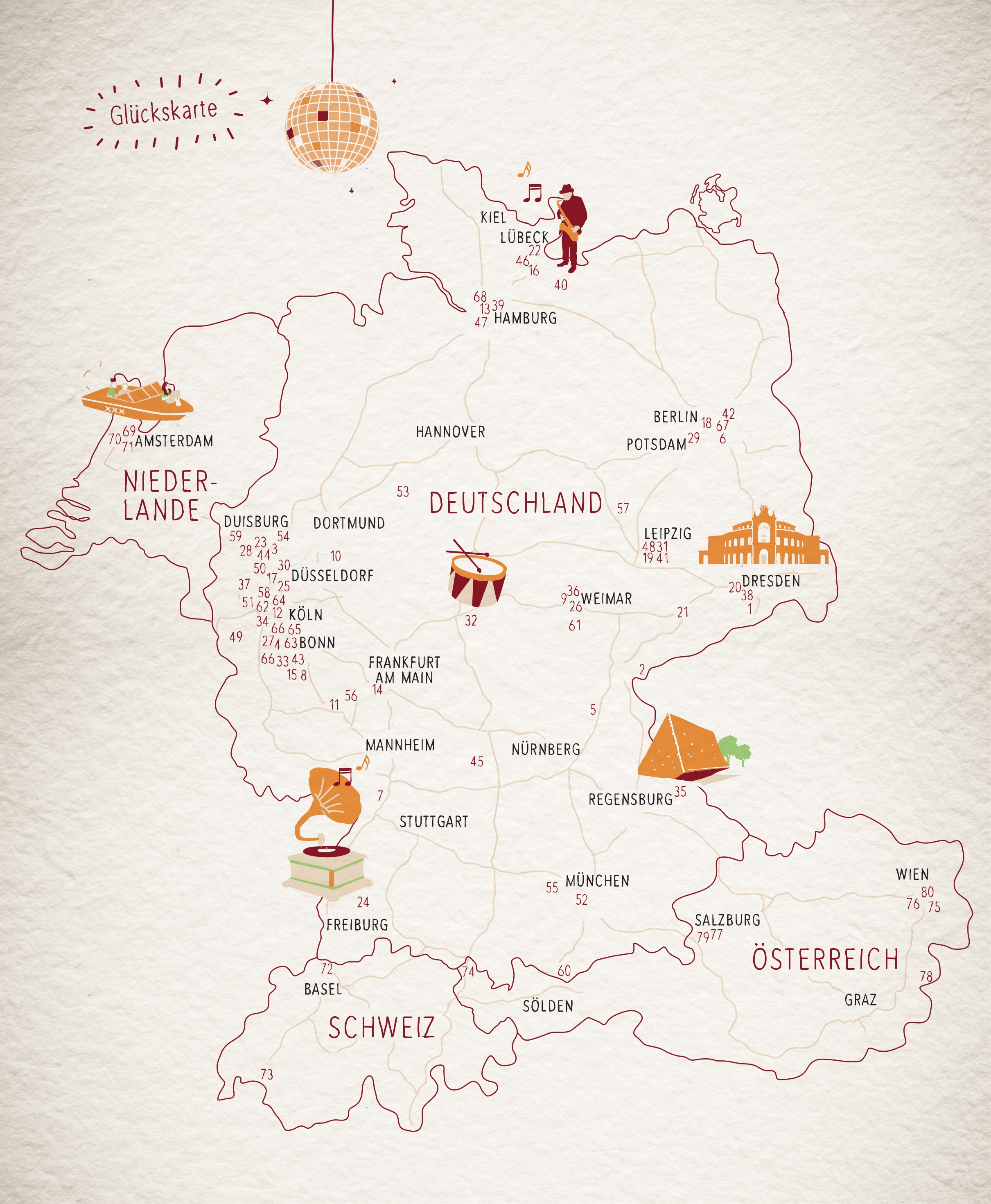 Musik macht glücklich! Das lässt sich in ganz Deutschland erleben: vom Mitsingkonzert über Sinfonieorchester bis hin zum Instrumentenbau. Das Bayreuth Baroque, das Playgroundfestival in Weimar, die Jazz Baltica und das Deutsche Chorfest sind Highlights im musikalischen Jahr. Und was macht den Romanischen Sommer in Köln so besonders? Wie klingt Musik in einer Tropfsteinhöhle oder in der JVA? Ob Musik hören oder machen, ob laut oder leise – Applaus für diese 80 Orte!