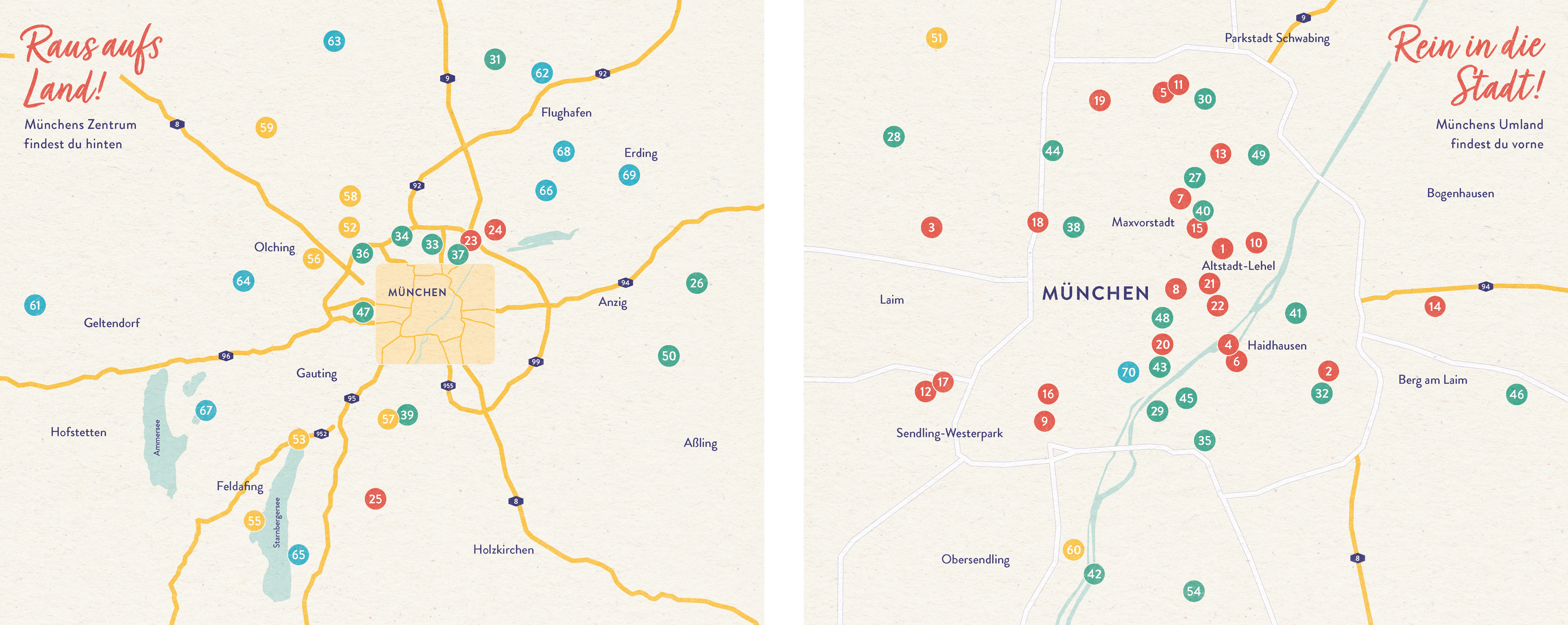 München ist natürlich die schönste Stadt der Welt, aber auch ein bisserl hektisch. Dabei locken unter dem weiß-blauen Himmel herrliche Auszeiten, die schon beim Lesen glücklich machen: ein Café voller Bücher, eine klangvolle Salzgrotte, eine Wanderung mit Alpakas, ein Treffen zum Lachen oder Brotbacken. Von der kleinen Atempause für zwischendrin bis zum freien Wochenende versprühen diese 70 Ich-Zeit-Orte Erholung und Wohlbefinden. Dann ist München plötzlich der entspannteste Ort im Universum.