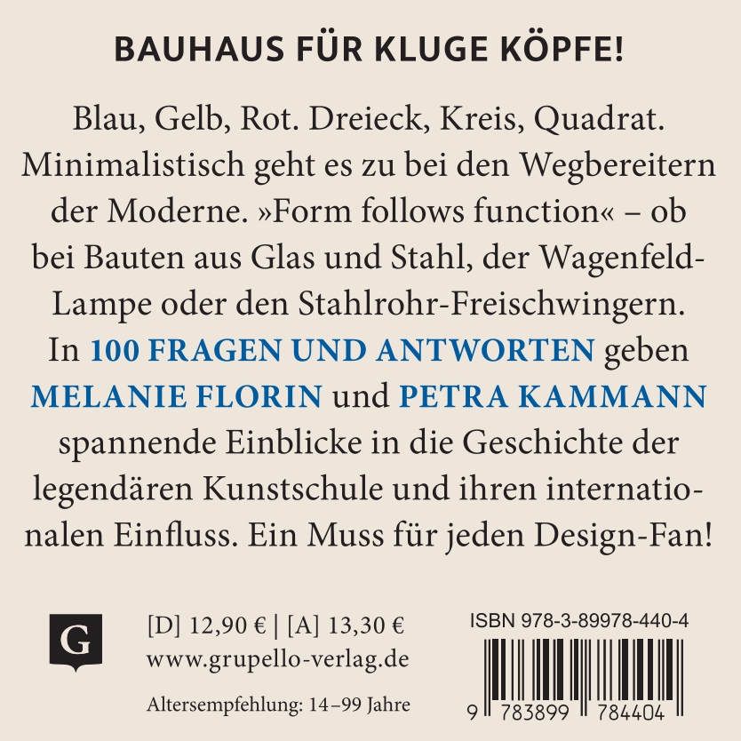 Blau, Gelb, Rot. Dreieck, Kreis, Quadrat. Minimalistisch geht es zu bei den Wegbereitern der Moderne. „Form follows function“ – ob bei Bauten aus Glas und Stahl, der Wagenfeld-Lampe oder den Stahlrohr-Freischwingern. 100 Fragen und Antworten geben spannende Einblicke in Leben, Wirken und Werk der Kunstschaffenden in Dessau, Weimar, Berlin sowie ihren international ausstrahlenden Einfluss. Ein Muss für jeden Design-Fan!