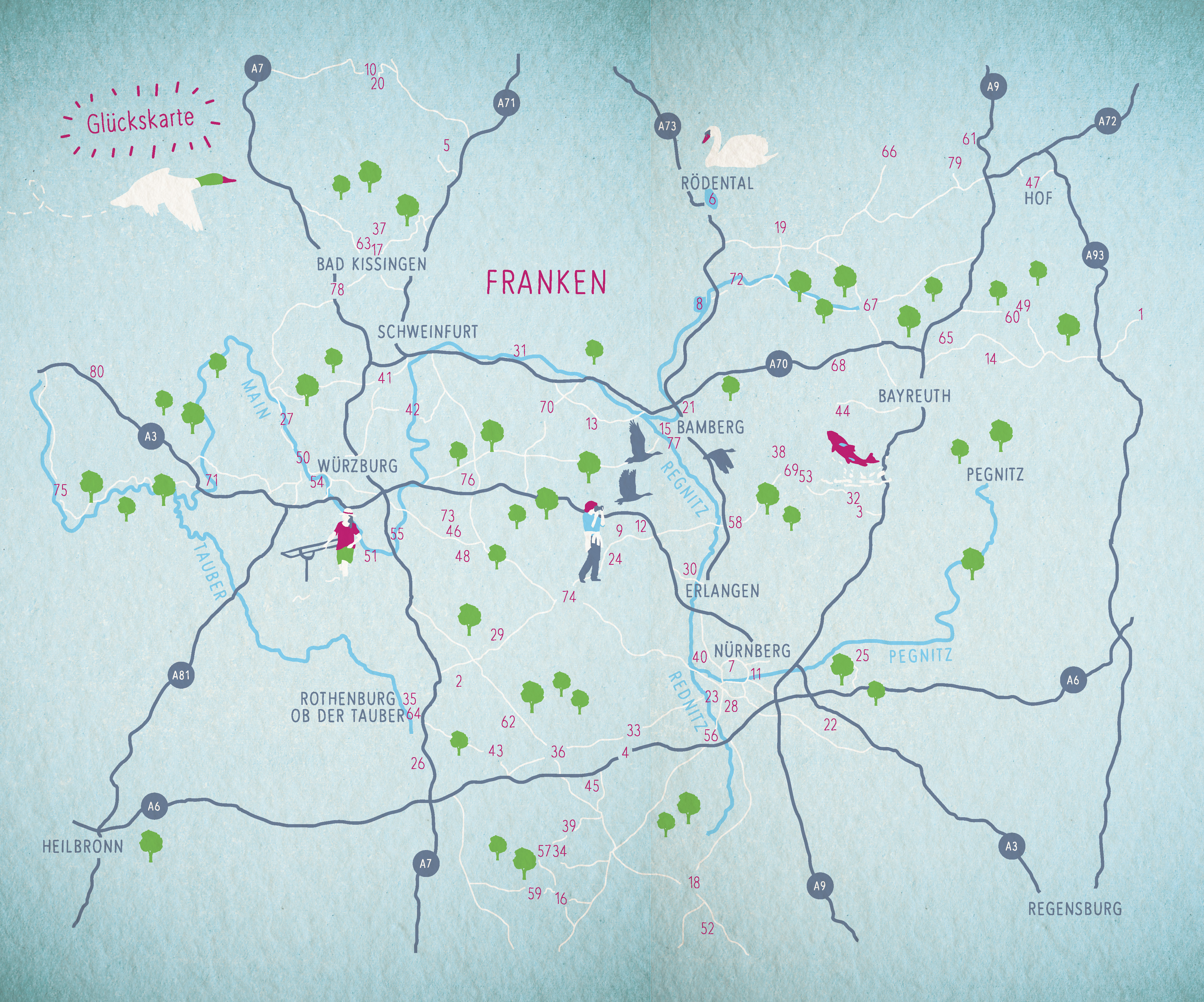 Versteckte Quellen, glitzernde Seen und plätschernde Brunnen – Franken ist eine zauberhafte Wasserwelt voller Wunder. Kultur, Tradition und Naturschätze gibt es an den 80 blauen Glücksorten im Herzen fränkischer Gemütlichkeit zu entdecken, von malerischen Flüssen mit bewegenden Geschichten bis zu mediterranen Oasen purer Entspannung. Willkommen in einer Region, wo Wasser die Seele berührt und jede Entdeckung zu einem unvergesslichen Glücksmoment wird!