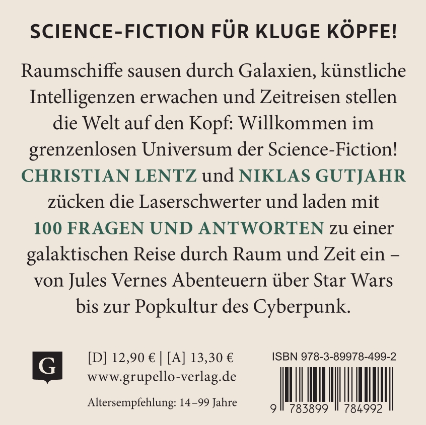 Raumschiffe sausen durch Galaxien, künstliche Intelligenzen erwachen und Zeitreisen stellen die Welt auf den Kopf: Willkommen im grenzenlosen Universum der Science-Fiction! Von Jules Vernes literarischen Abenteuern über Filmklassiker wie „Star Wars“ bis zur Popkultur des Cyberpunk geht es auf eine Reise durch Raum und Zeit. Die galaktischen Fragen und Antworten laden dazu ein, Parallelwelten zu entdecken, Laserschwerter zu zücken und das Unmögliche möglich zu machen.